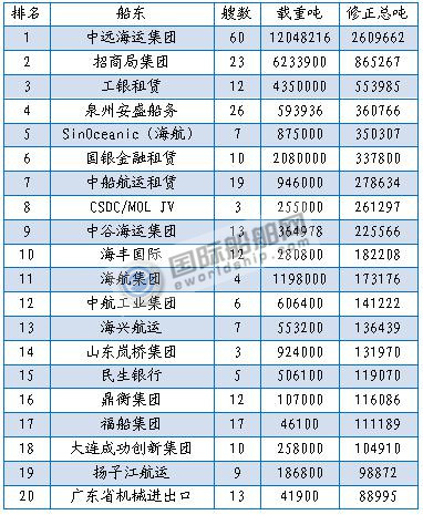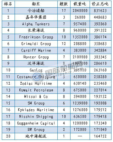 注:排名按修正总吨,数据截止2018年6月底;数据来源:克拉克森