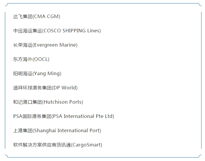 此次新成立的全球航运商业网络(Global Shipping Business Network,简称GSBN),签约成员包括以下 9家在业界具有领先地位的海运承运人和码头运营商: